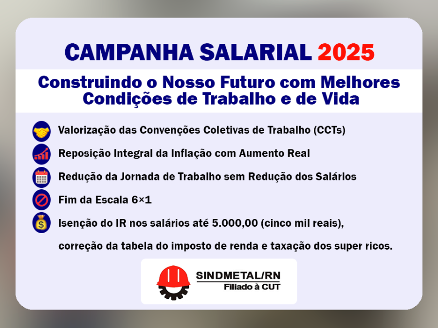 O Sindicato dos Trabalhadores Metalúrgicos de Natal e região do RN iniciou no dia 27 de junho mais um importante momento da Campanha Salarial 2025.
