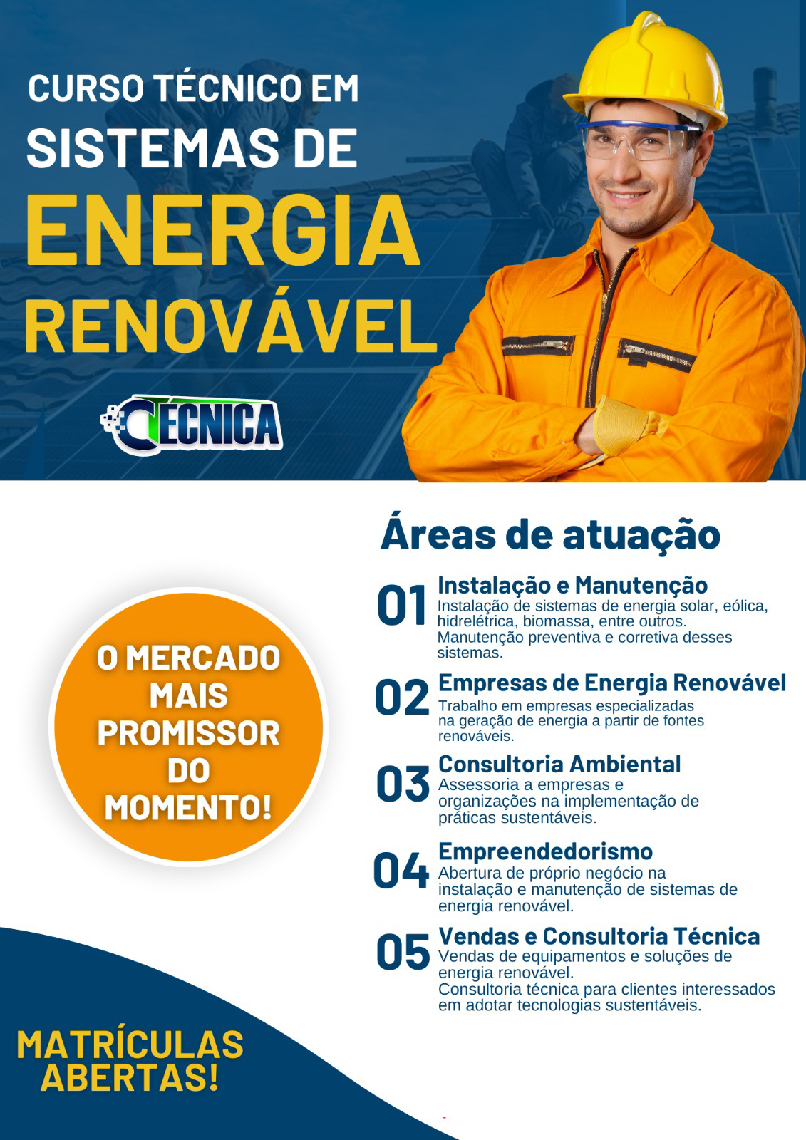 Este curso semipresencial é a sua chance de mergulhar fundo no universo das energias renováveis, equilibrando flexibilidade e aprendizado prático. Ideal para quem busca aprimorar suas habilidades sem abrir mão da sua rotina.